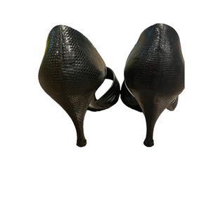 Salvatore Ferragamo D'Orsay Black Heels Pumps Open Toe Reptile Print Leather Sz