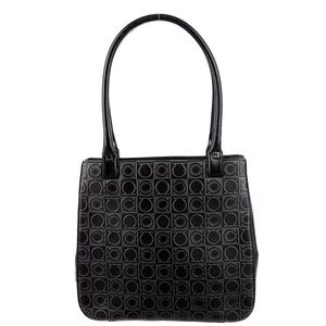 Elevate your style with this chic black leather mini Salvatore Ferragamo mini tote bag. Perfect for any occasion, this bag combines elegance and functionality. A must-have accessory for the modern woman.