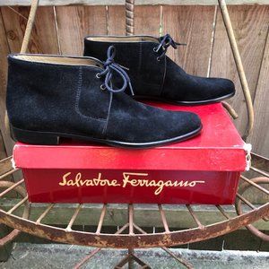 These beautiful Salvatore Ferragamo booties come in supple black suede. They are brand new and in box. The box has some wear on the corners, the boots have never been worn and are immaculate on the outside. There is a very small mark on the interior of the left boot. Please see photo for reference.