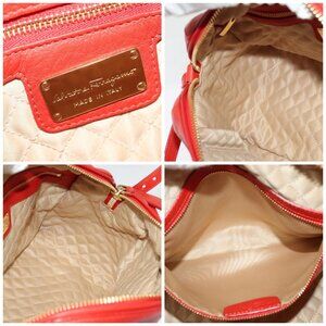 Salvatore Ferragamo Vala Hand Bag Leather 2way Red Gold Auth