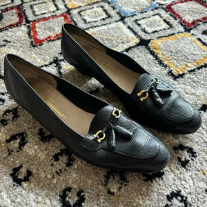 Salvatore Ferragamo Womens Animal Print Loafers 8.5 Black Lizard Whimsigoth