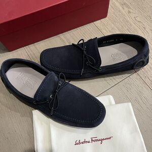 Salvatore Ferragamo Atlante Navy Suede Men Drivers Loafers 10 E NEW