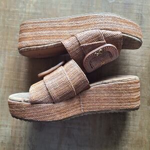 Sam And Libby Crysta Buckle Platform Wedges Rattan Buckle Slip On Sandals Size 7