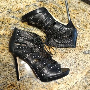 Sam Edelman Elyese Black Leather Studs Open Toe Heels Women's Size 9 M.