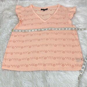 Sanctuary Women’s Peach Flutter Cap Sleeve Floral Eyelet Tunic Blouse S/C39