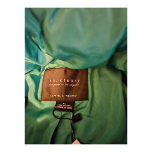 XL Long Sleeve Zip up Puffer Jacket is new with tags attached. Brand is Sanctuary, material is polyester, dry clean only. Measurements are a flat lay and are approximate.