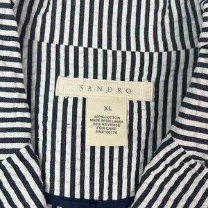 Sandro Blazer Jacket seersucker striped lightweight three button Gray White XL