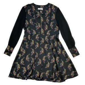 Sandro Paris Kaiya Tiger Print Dress 3 US/8 Black Long Sleeve Mini MISSING BELT
