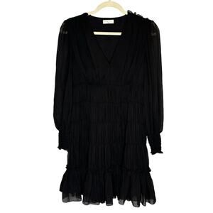 Sandro Voile Tiered Ruffle Mini Dress Black