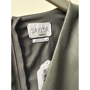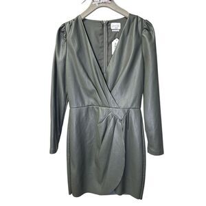 Green faux leather (100% Polyurethane). A-line. V-neck. Long sleeves.