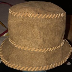 Scala brown suede bucket hat whipstitch stitching,milk chocolate color NWT