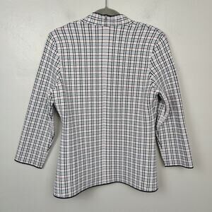Scanlan Theodore Houndstooth Knit Blazer Womens Large White Blue Black Pastel Pink ZIp Up Preppy