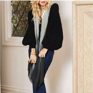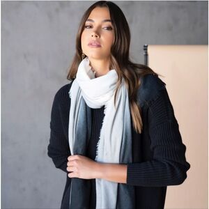 Wrap yourself up in CUSHNIE’s Grey Horizon Ombre Scarf. Super soft and luxuriously oversized, you can wear it around your neck, cinch it with a belt, bathing suit cover up, or even use it as a blanket for a cozy night in.