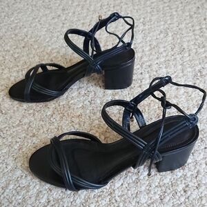 Perfect for day or night, they're crafted from nappa leather with wrap-around straps, a block mid-heel and ankle-tie fastening to keep you secure.