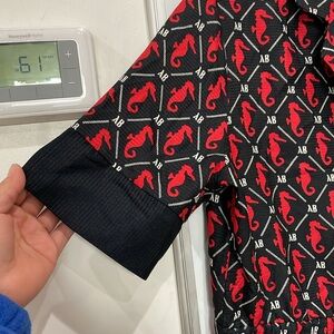 Scotch & Soda Midi Dress Short Sleeves Seahorses Navy Blue Red Waist Tie Size L