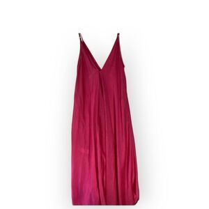 Bohemian trend midi dress. Bright pink summer colour. Sustainable fabric.