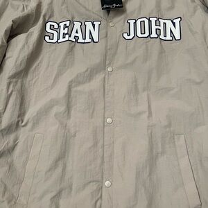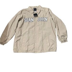 Sean John Men's Spell Out Khaki Tan Military Button Jacket - Size XL