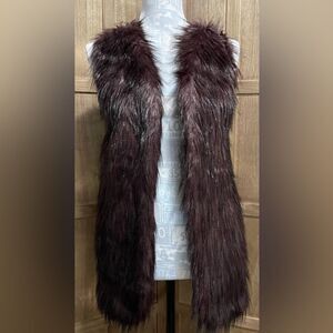 Sebby Collection Faux Fur Vest. Aubergine Ribbed Knit Back.