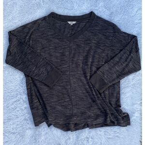 This a woman’s Secret Treasure SZ 3X light weight gray long sleeve top. It is V-neck, ribbed at the collar and sleeves with slits at the bottom sides.