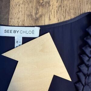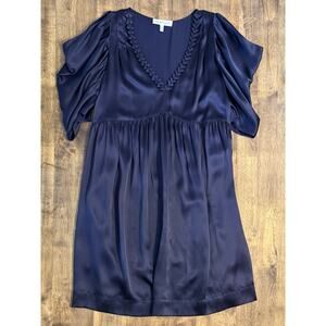 See by Chloe Women’s 100% Silk Empire Waist Cold Shoulder V Neck Dress Blue Sz 6