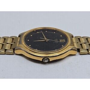 SeikoQuartz, VintageDressWatch, GoldToneBlackDial, MensClassicWatch, SlimCase34mm, RomanTwelve, MinimalistStyle, DotIndexes, BraceletBand, JapanQuartzMovement, NewBatteryInstalled, StainlessBack, V7016K09, 1990sSeiko, EverydayFormal, ThinProfile, ThreeHandAnalog, BlackFaceWatch, GoldToneWatch, DressyTimepiece, QuartzWristwatch, CollectibleSeiko, AffordableVintage, ReliableQuartz, FreshBattery, WorkingCondition, GiftReady, OfficeStyle, MinimalistWatch, RetroAesthetic