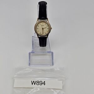 Seiko Women's Watch 24MM Gold Dial Gray Gold Case Black Leather Band New Battery