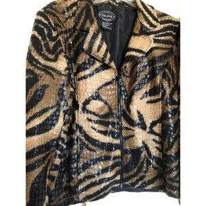 Selene Gorgeous Animal Print Tiger Striped Jacket Blazer size Large with pockets