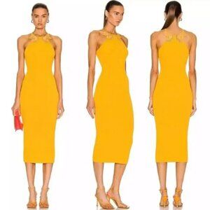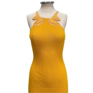 Self Portrait Canary Yellow Inserted Lace Knit Dress Size Small