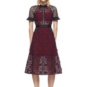Self-Portrait Floral Grid Midi Dress Lace Collared US 2 UK 6 Extra Small