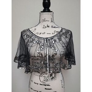 ✨ Sequin Mesh Evening Party Retro Flapper 1920s Shawl Wrap Cover Up Cape NEW