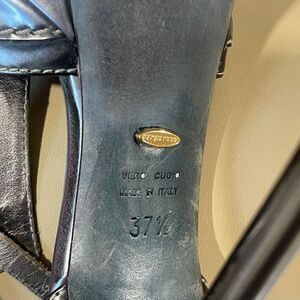 Beautiful Sergio Rossi Gunmetal/Silver/Metallic Heels. Ankle Strap with a Gold Metal Closure.