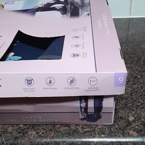 Darling floral boots that will certainly get you noticed because they are so unique and colorful. The box nay not be able to be shipped due to USPD size boxes but I will certainly try if need be. They are in oerfect unworn condition with no issues. They are a copy of that other famous boot maker at a fraction on the cost.