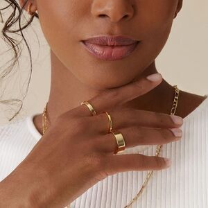 This stackable ring set features three bands with widths measuring at 1.5mm, 3mm, and 6.5mm making it a perfect set to stack with your favorite rings or worn alone.