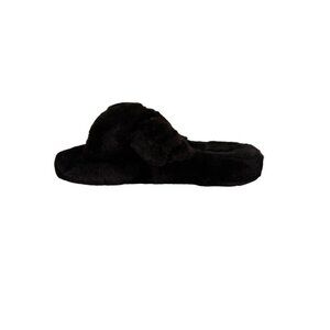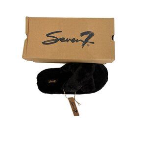Seven7 Slippers Black Faux Fur Slides Size 10 Memory Foam NIB