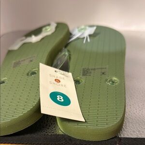 Experience the perfect blend of comfort and style with these Shade & Shore sandals, featuring a sleek green design. The Y-shaped thong strap and flat sole provide a relaxed fit, ideal for casual outings. Crafted from durable materials, these sandals promise long-lasting wear.
