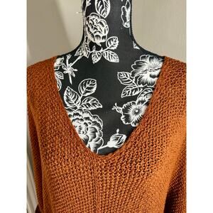 She + Sky Open Knit Oversized V Neck Sweater Rust One Size