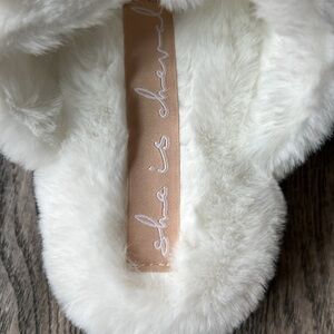 She is Cheval Shoes White Faux Mink Neverending Story Slippers Size 7 Bridal