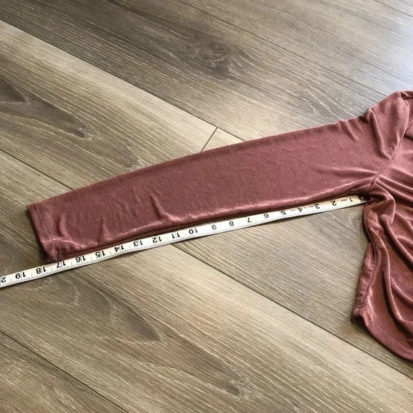 Shein Brown Scrunched Cropped Button Down Collared Long Sleeve Shirt Size Medium