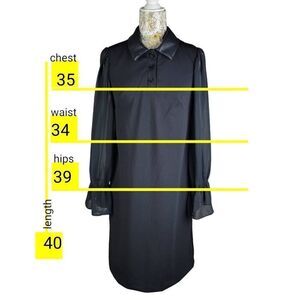 Shelby & Palmer Faux Leather Collar Button Up Sheer Blousy Sleeves Black Dress sz 8 in EXCELLENT condition! Soft faix leather collar feels real. Zips up the back. Buttons up the front. Unlined. See photos for details and approximate measurements.