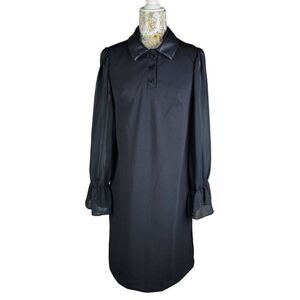 Shelby & Palmer Faux Leather Collar Button Up Sheer Blousy Sleeves Black Dress