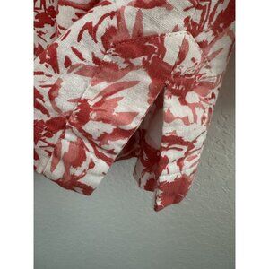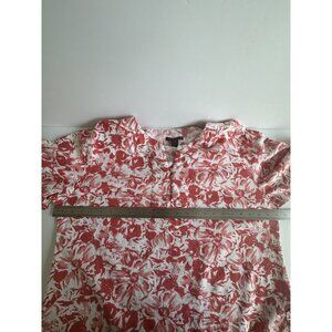 Sherry Taylor Shirt Womens 2X Red White Floral Linen Blend 3/4 Sleeve Button Boho