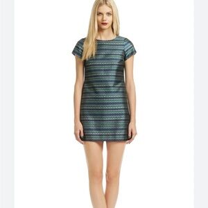 Shoshanna Take Notes Shift Dress Blue Green Patterned