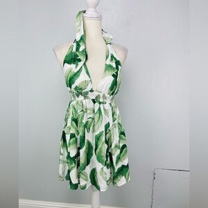 Show Me Your Mumu Green Leaf Palmtini Island Mini Halter Dress