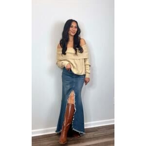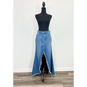 Show Me Your Mumu Reba Maxi Skirt in Open Seas Blue Size 27 Denim Fringe Hem