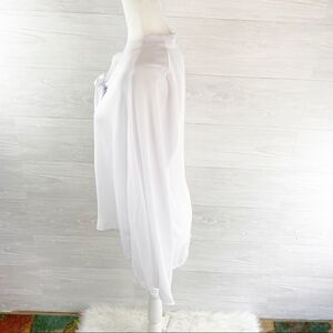 Show me Your Mumu Brynn Top size small. White polyester material with button down closure. Bell sleeves and tie Neck collar. High low hemline. No holes or stains.