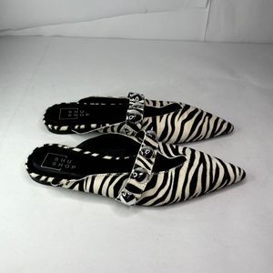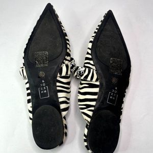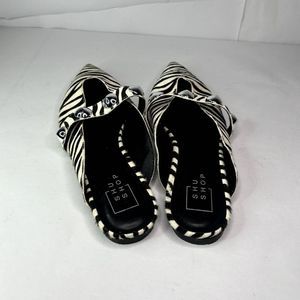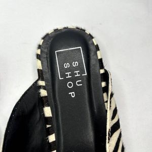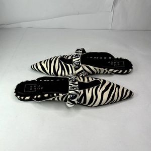 Shu Shop Alma Leather Zebra Hair Mules Ballerina Silver Pointed Toe Womens