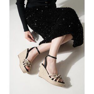 High Heel Strappy Sandals with Unique Knot Design: The cross-braided straps with a stylish knot detail create a unique and fashionable look that will set you apart from traditional styles. These wedge sandals for women are perfect for making a statement at any event.