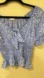 This charming crop top by Sienna Sky features a delightful blue and white color scheme with puff sleeves and a tie front. The smocked waistband and ruffled details add a touch of elegance, making it a perfect choice for a stylish and romantic look.