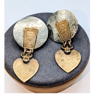 Signed Marjorie Baer SF Mixed Metal Industrial Modern Heart Dangle Clip Earrings. Pre-owned, these earrings are in great condition.