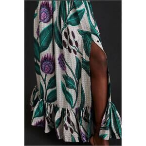 SIKA Off the Shoulder Floral Printed Ruffle Maxi Dress Size 00 is brand new with tags! This stunning, bold floral printed maxi dress is perfect for any occasion! Featuring a sexy off the shoulder neckline, stunning ruffle detail hem, sweetheart neckline, luxurious cotton and made in Africa. Please be aware Size tag is frayed but does not effect look of dress, pictured above. Measurements below:
